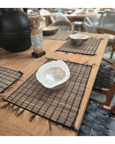 Disponibles en acabado de hilo blanco o negro, estos manteles individuales son verdaderas piezas de artesanía, hechas a mano en Indonesia por expertos artesanos. Cada pieza es única, y combina tradición y sostenibilidad para transformar cualquier comida en un momento especial.